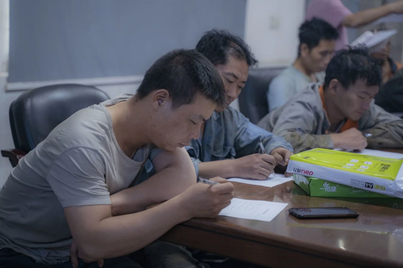 在對(duì)行車、有限作業(yè)空間安全操作標(biāo)準(zhǔn)進(jìn)行細(xì)致學(xué)習(xí)后,全體參會(huì)人員一同觀看安全教育視頻,了解車間作業(yè)中發(fā)生的真實(shí)事故,以及事故帶來(lái)的人員財(cái)產(chǎn)傷害。安全生產(chǎn)教育培訓(xùn)的環(huán)節(jié),車間工人進(jìn)行行車安全知識(shí)培訓(xùn)考試。安環(huán)委主任表示,他希望通過(guò)現(xiàn)場(chǎng)筆試這一方式,檢驗(yàn)大家此次培訓(xùn)掌握情況,同時(shí)進(jìn)一步加深鞏固安全知識(shí)。