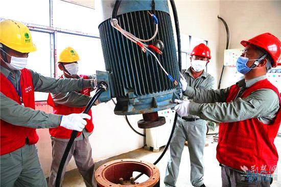 原200千伏安的變壓器被吊下配變臺架,新調(diào)來的315千伏安的變壓器平穩(wěn)地落座在配變臺架上……通過近4個小時的安裝、調(diào)試,接通10千伏千畝湖支線等一系列的緊張作業(yè)。19時02分,2臺先期安裝好的55千瓦的水泵成功發(fā)起,兩股水流沖出千畝湖,流向遠方。