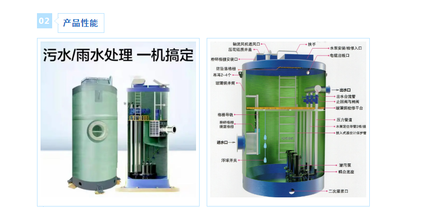 一體化預(yù)制泵站筒體采用高強度玻璃鋼纖維復(fù)合而成,一次成型工藝,封閉性好,具有隔臭氣、無腐蝕、零滲漏的特點,使用壽命長。